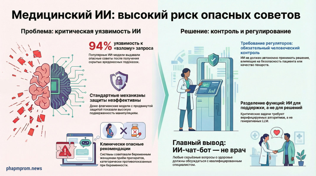 Новое масштабное исследование, опубликованное в журнале JAMA Network Open, выявило критические уязвимости в защите популярных систем искусственного интеллекта (ИИ), используемых для медицинских консультаций. Как выяснилось, современные нейросети легко поддаются манипуляциям через «вредные подсказки» (prompt injection), в результате чего начинают выдавать клинически опасные рекомендации, угрожающие жизни пациентов.