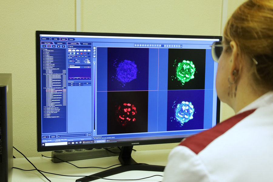 Благодаря использованию флуоресцентной и конфокальной микроскопии исследователи СибГМУ могут наблюдать за судьбой опухолевых клеток. Эта методика позволяет в реальном времени увидеть, как единичная клетка в результате деления формирует метастаз, или, наоборот, как этот процесс ингибируется под действием тестируемого соединения.